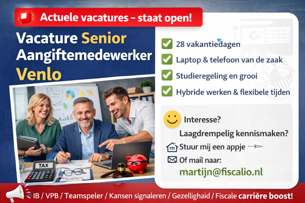 Vacature aangiftemedewerker Venlo (en omstreken) — ik zoek een gedreven fiscalist met gevoel voor cijfers én een vleugje humor!